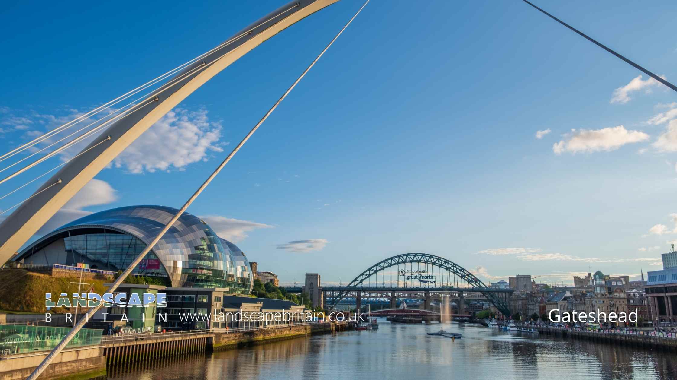 The town of Gateshead in Tyne and Wear, England, is situated on the south bank of the River Tyne, in the Metropolitan Borough of Gateshead.